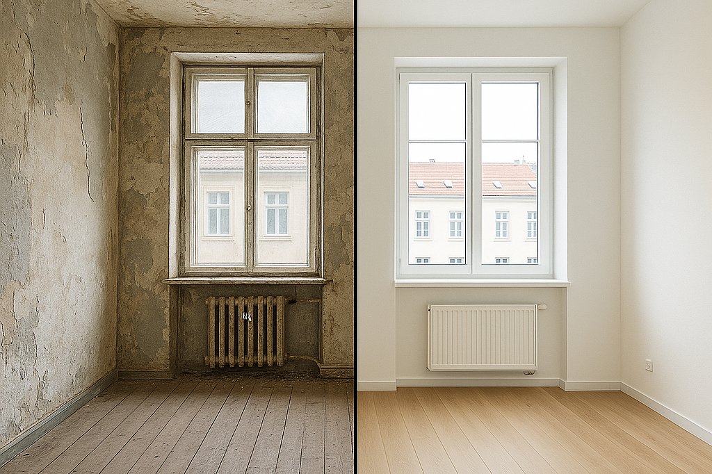 Unser Fokus liegt auf dem Erwerb von sanierungsbedürftigen Immobilien, die wir gezielt identifizieren und erfolgreich aufwerten.